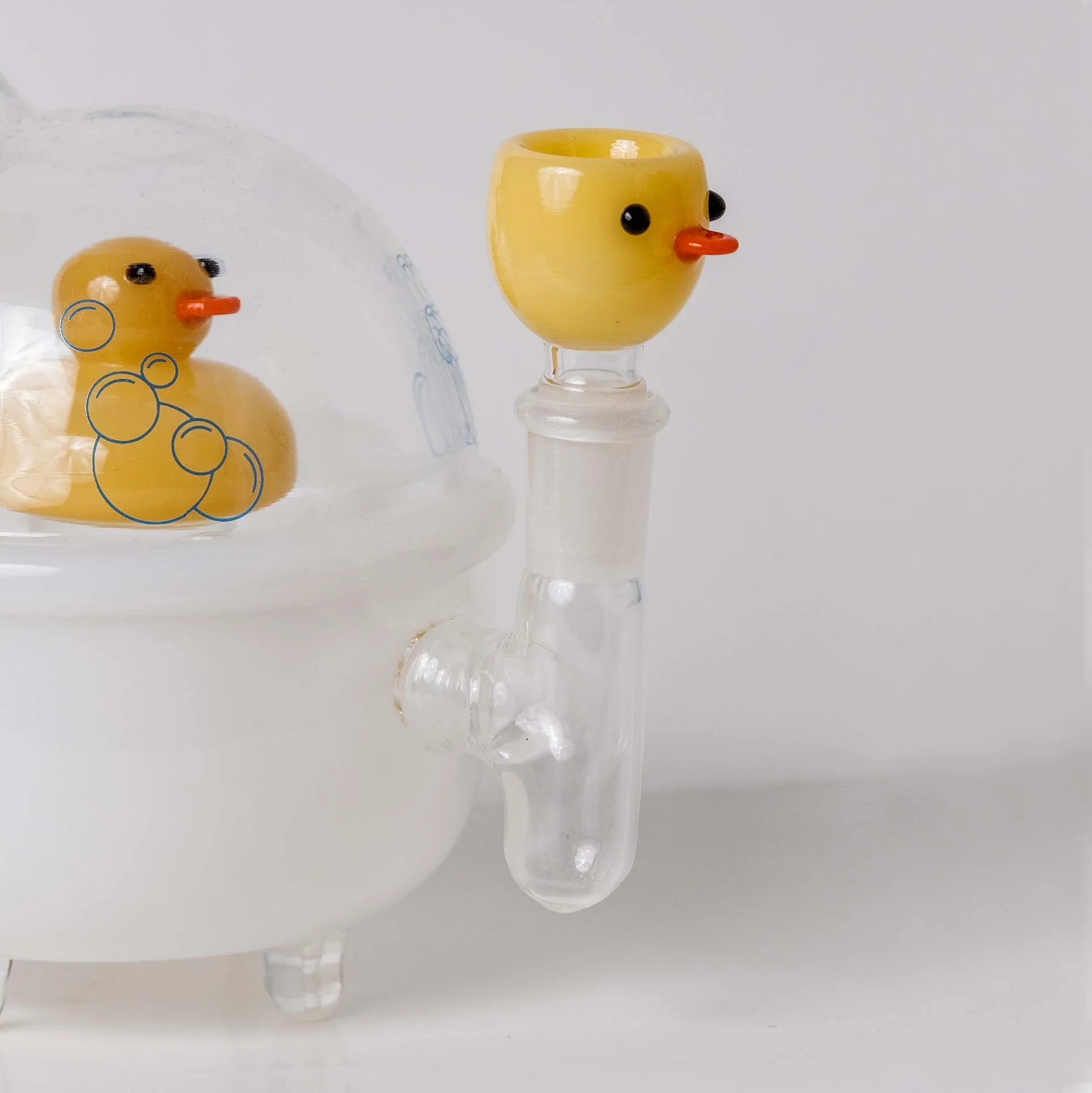 這款俏皮的造型擁有額外的容量,高聳的身軀上漂浮著一隻橡皮鴨,玻璃桶裡點綴著泡泡,並配有一個配套的鴨子浴缸。