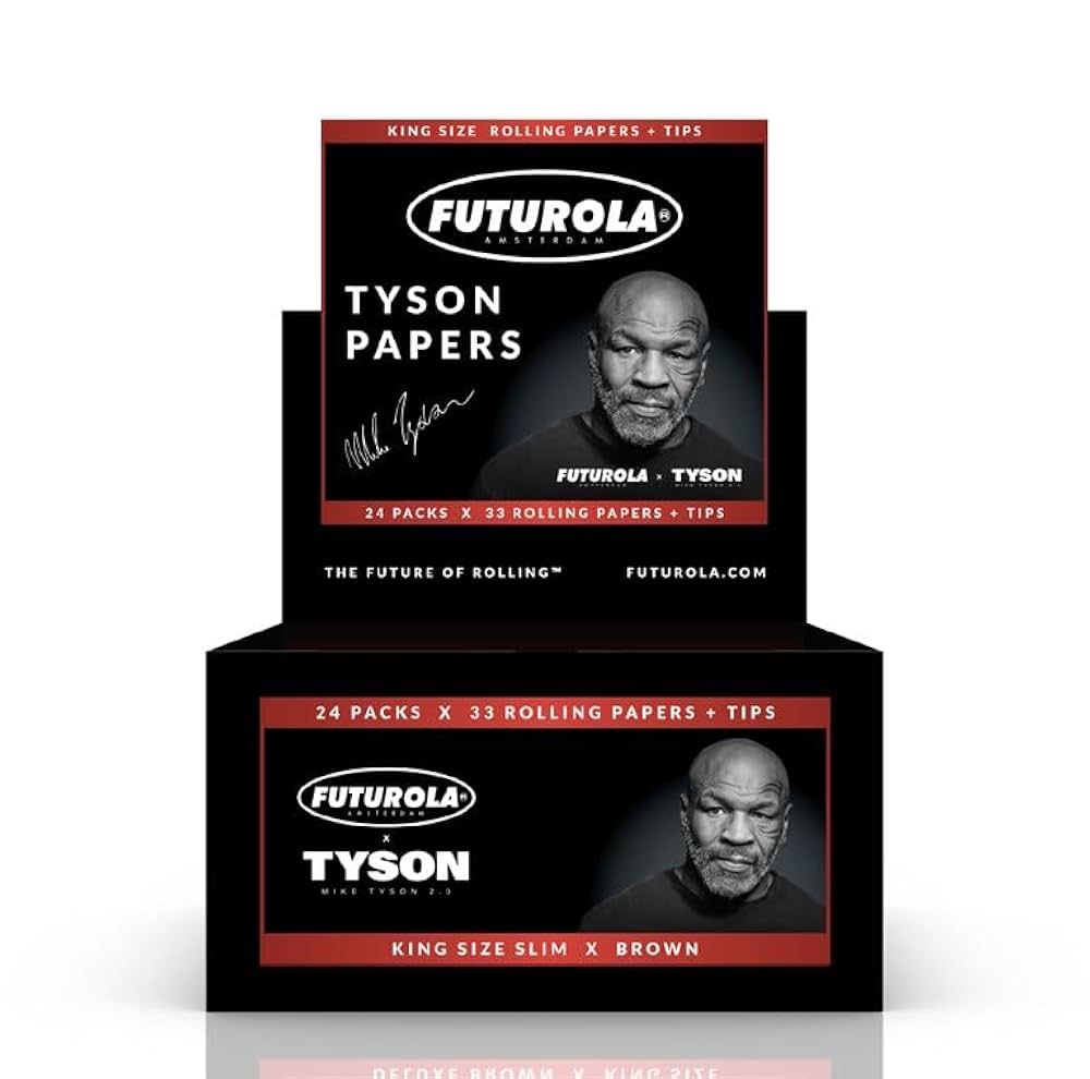 Mike Tyson 與 Futurola 聯名推出的高級 king size 尺寸捲菸紙組合,內附濾嘴片,方便隨時捲製。
